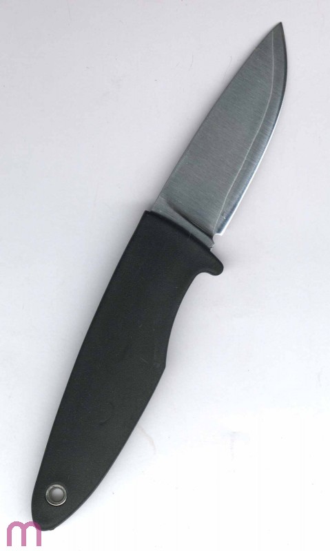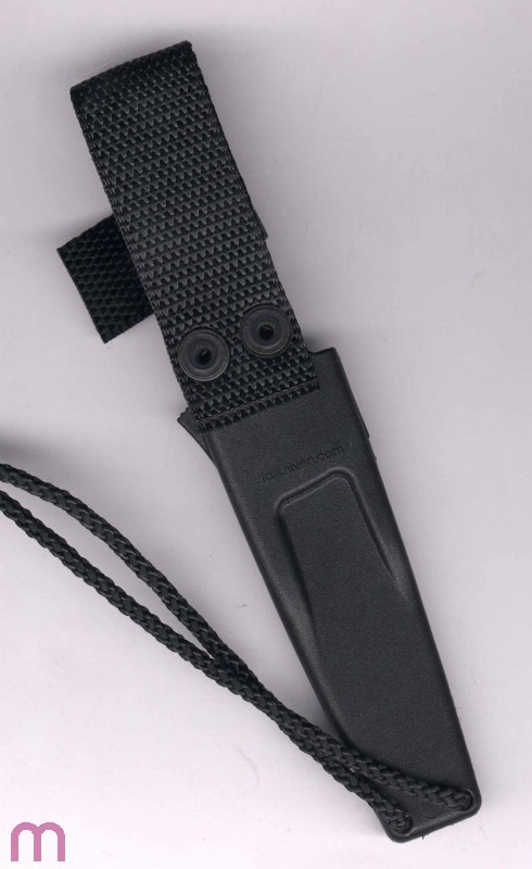 Ideales kleines Neckknife oder Gürtelmesser, Gesamtlänge 17,2cm, davon 7cm Klingenlänge. Laminierter VG-7Stahl, konvexer Schliff, Zytelscheide.